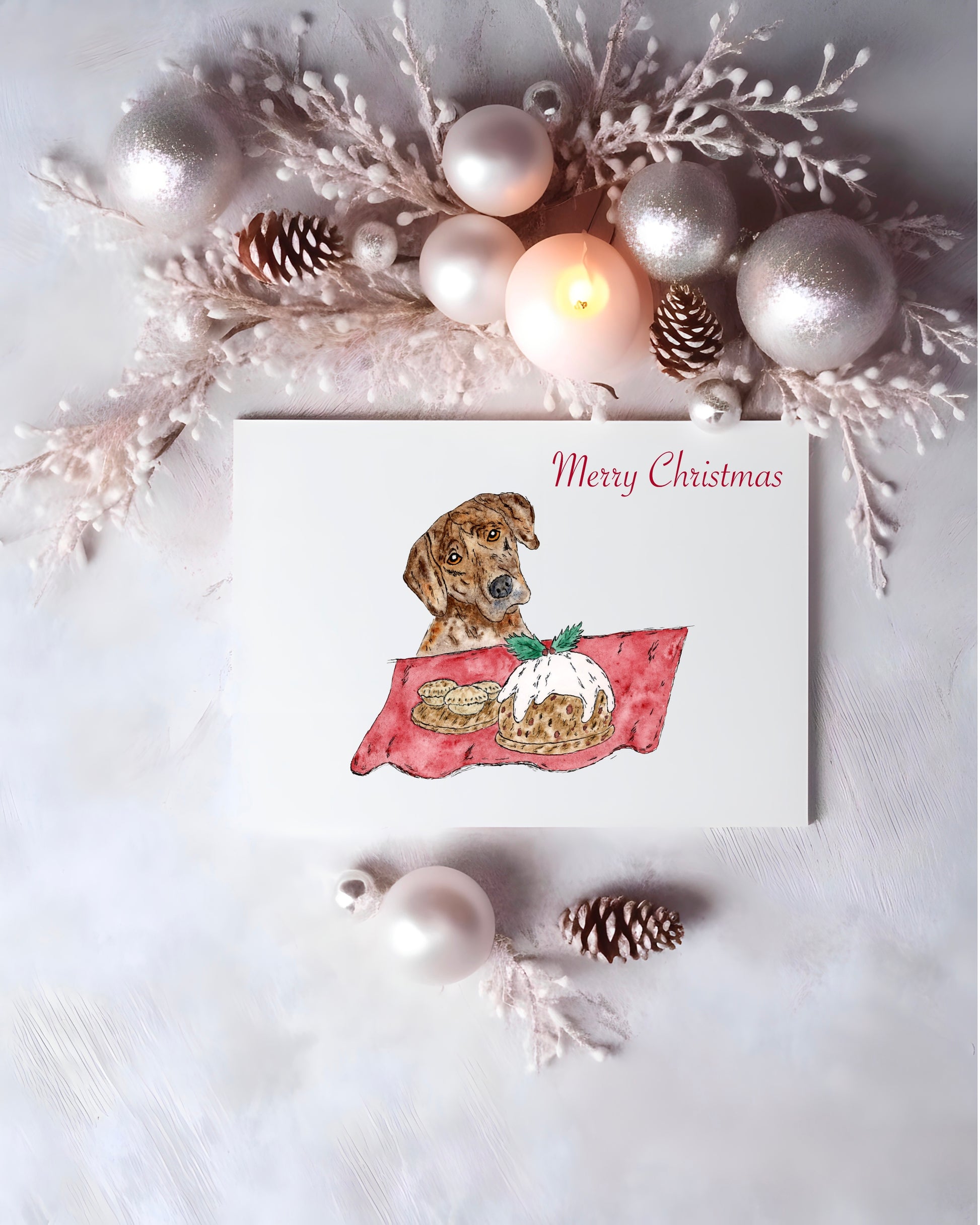 Christmas Watercolour Greeting Card - xmas-pudding - Dog-| Original Art