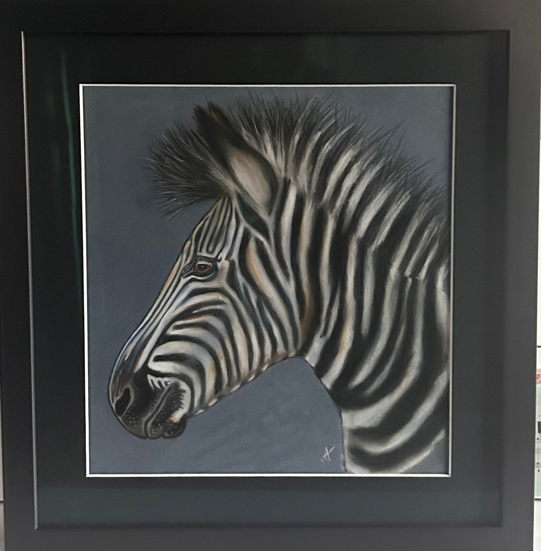 This stunning original zebra painting is handcrafted using premium lightfast soft pastels on high-quality pastel mat, capturing the beauty and character of this magnificent animal in delicate, vibrant detail.
