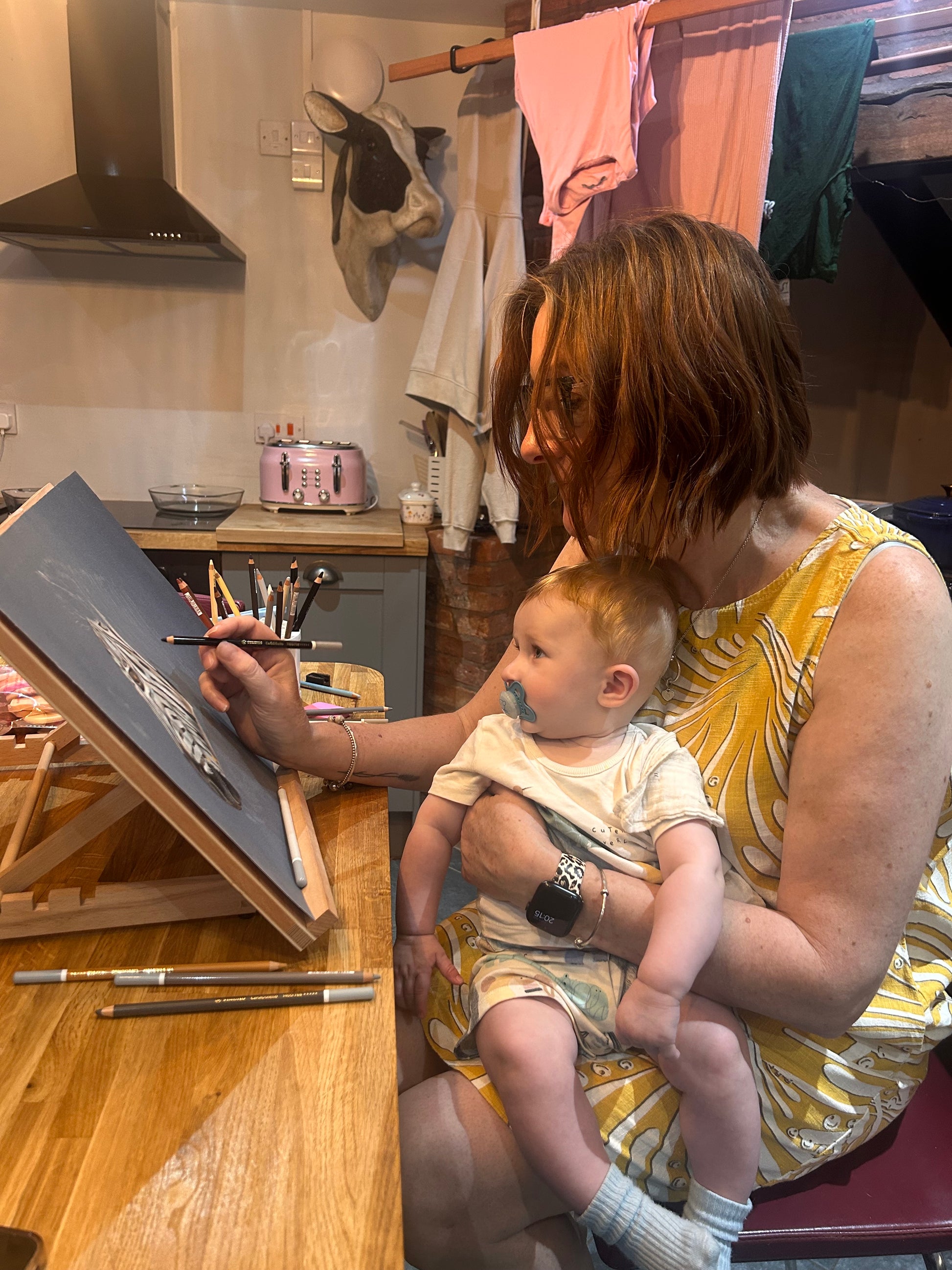The artwork measures 27.3cm x 29.5cm and comes professionally mounted in a complementary black matt frame with a matt black mount. The frame is a specialist pastel frame with UV-protective glass to preserve the artwork for years to come. Size of frame is 40cm x 43cm.