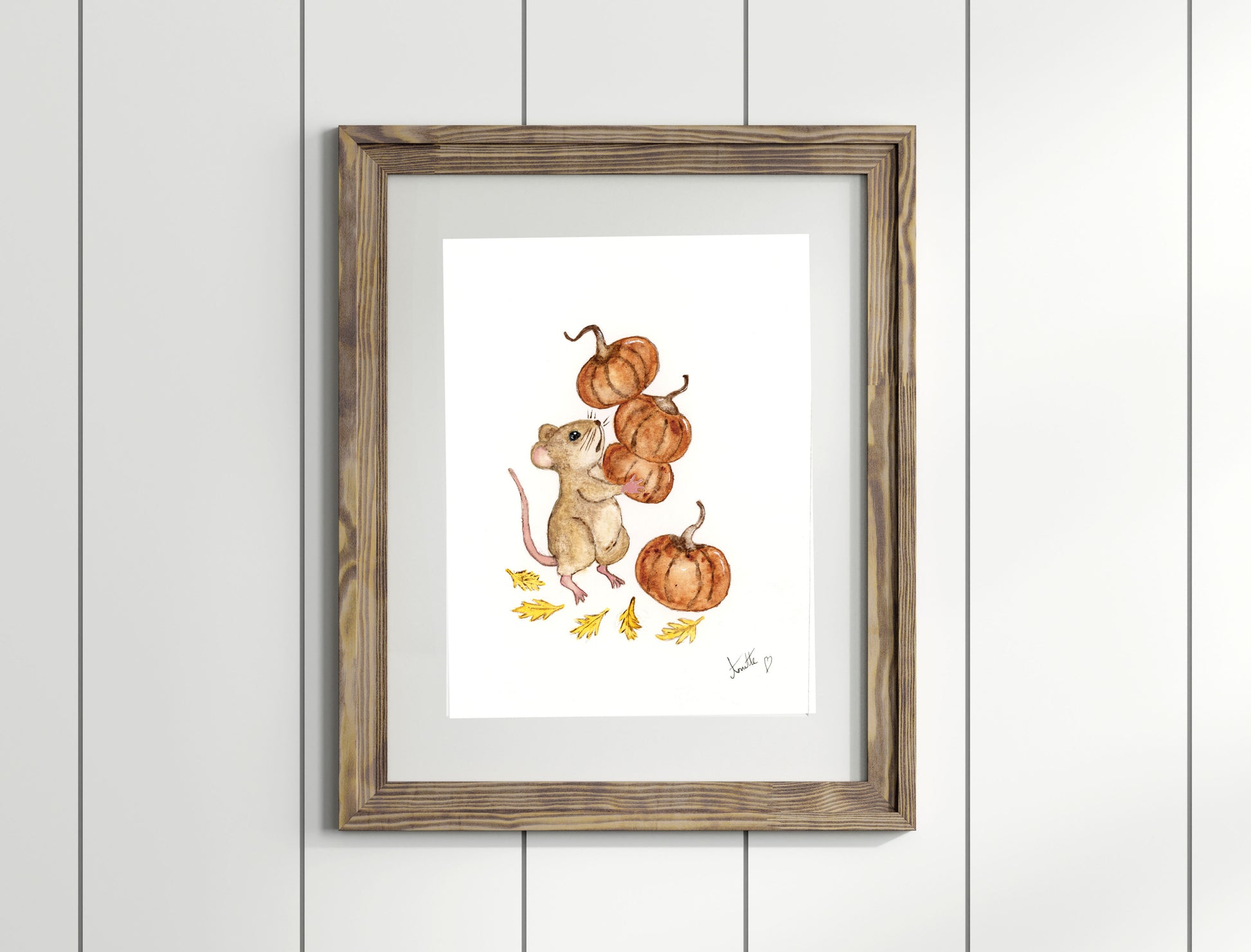Original hand painted watercolour painting, illustration - pumpkin mouse.